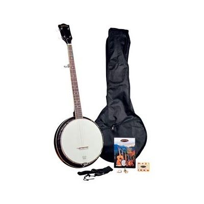 This Full Size Five String Banjo from Saga's line of Appalachian musical products has a solid wood neck with bound rosewood fret board and vintage style nickel plated hardware. Also comes with HOMESPUN instructional dvd, gig bag, adjustable strap, fingerpicks, and pitch pipe tuner.
